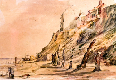 Remains of defences, painting early 19th century, Cromer Museum